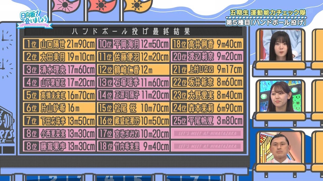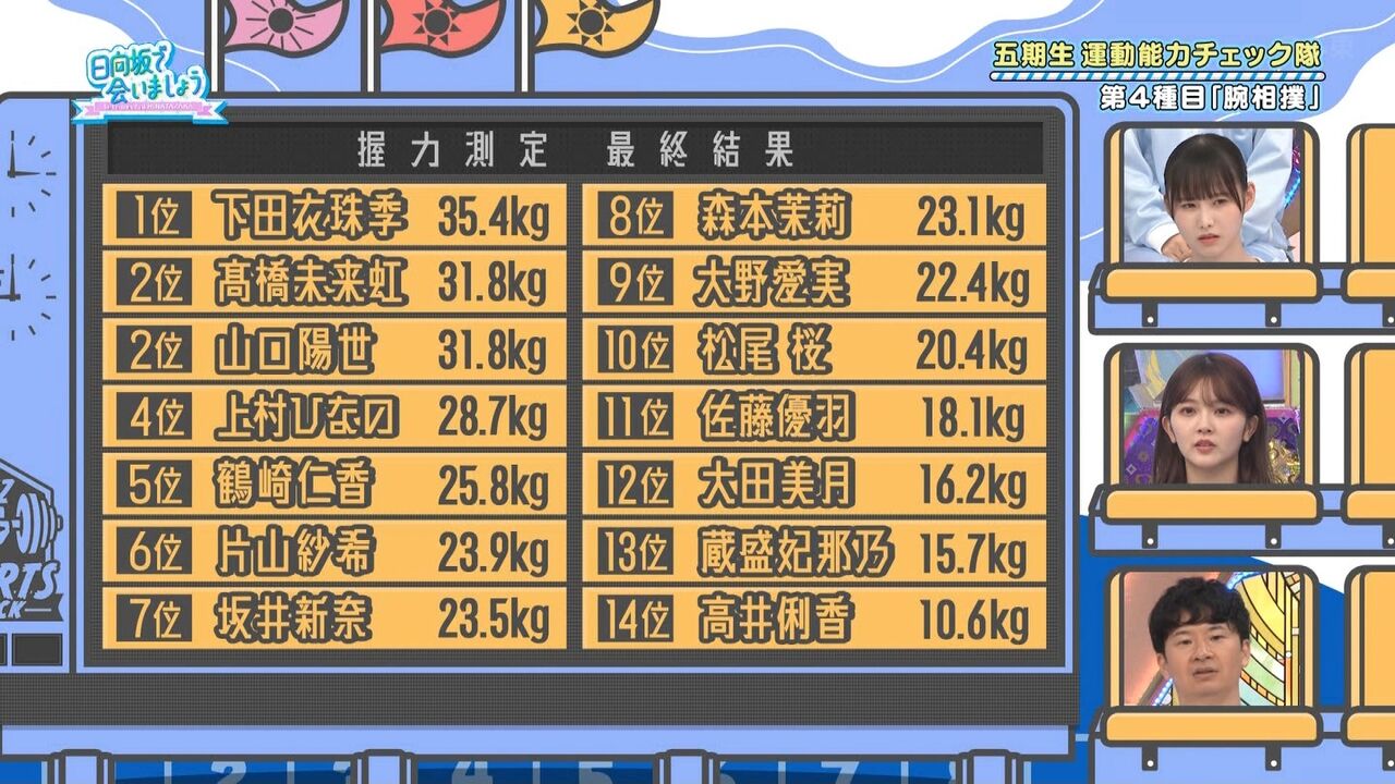 あと、ひなのが握力上位なのも意外。